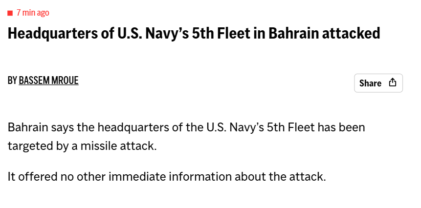 • Iran strikes US bases: Confirmed by US military or major news outlets reporting Iranian attacks on US military installations.