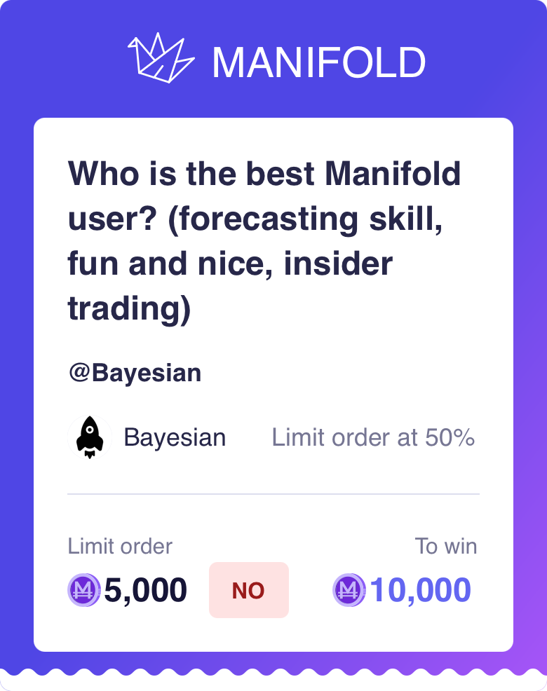 Bailed out some of Manifold's best-loved users incl. Predictor and Gigacuking